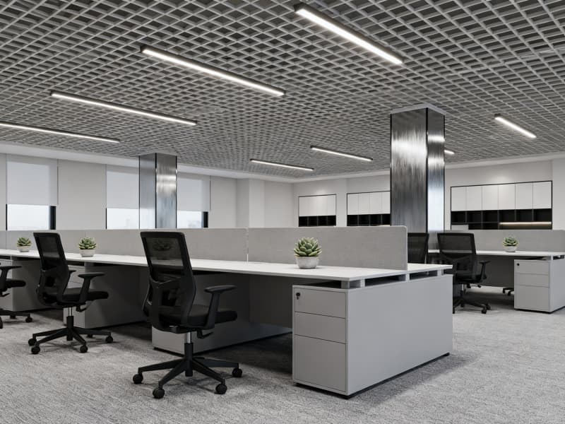 空間布局上,科學(xué)劃分接待區(qū)、開放辦公區(qū)、獨(dú)立辦公室、會議室、報(bào)告廳、休閑區(qū)、員工餐廳等功能區(qū)域,優(yōu)化垂直與水平動線設(shè)計(jì),保證辦公效率與使用便捷性。開放辦公區(qū)注重靈活性與協(xié)作性,采用模塊化家具與可調(diào)節(jié)隔斷,適配不同團(tuán)隊(duì)的辦公需求;獨(dú)立辦公室與會議室強(qiáng)調(diào)私密性與專業(yè)性,通過材質(zhì)與燈光營造沉穩(wěn)氛圍;休閑區(qū)與員工餐廳則注重舒適性,為員工提供放松、交流的空間,平衡工作與休息。