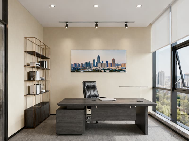 細(xì)節(jié)設(shè)計(jì)中,注重材質(zhì)的環(huán)保性與耐用性,選用低甲醛涂料、防滑耐磨地磚、靜音地毯等優(yōu)質(zhì)材料;融入智能系統(tǒng),如智能會議設(shè)備、無線充電模塊、智能照明等,提升辦公便捷度;通過落地玻璃窗、分散式照明等設(shè)計(jì)引入充足自然光線,減少空間壓抑感,同時搭配綠植裝飾,改善辦公環(huán)境。整體設(shè)計(jì)既滿足現(xiàn)代商務(wù)辦公的高效需求,又通過人性化細(xì)節(jié)與地域元素的融合,為企業(yè)打造兼具質(zhì)感與實(shí)用性的優(yōu)質(zhì)辦公載體。